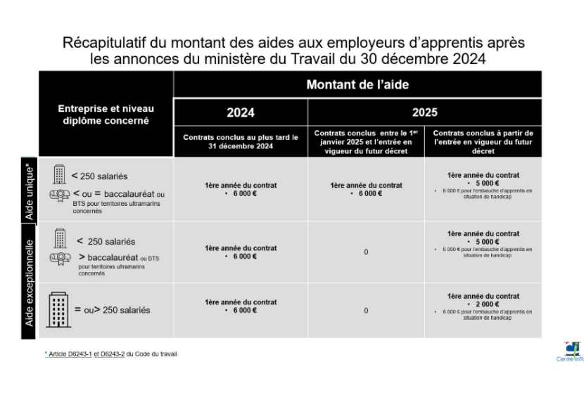 Le décret fixant l'existence et le montant des aides exceptionnelle à l'embauche des apprentis a pris fin au 31/12/2024. Qu'en est-il des aides pour les contrats signés en ce début d'année ?